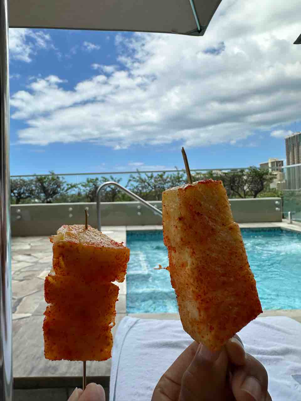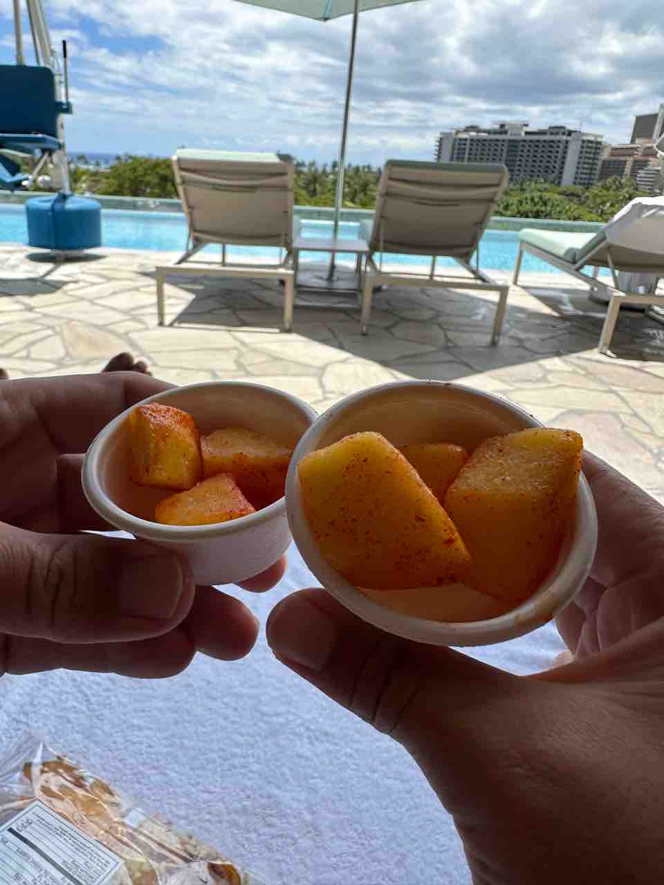 座っていたら梅のパウダー(?)をかけたパイナップルがいただけました。美味!