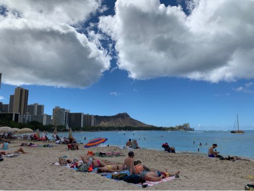 ワイキキビーチ!朝早めだから、ワイキキビーチにしては人が少ない。これでも。