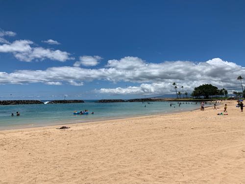 アラモアナビーチ、落ち着くわ〜。ワイキキと比べての、この人の少なさよ!