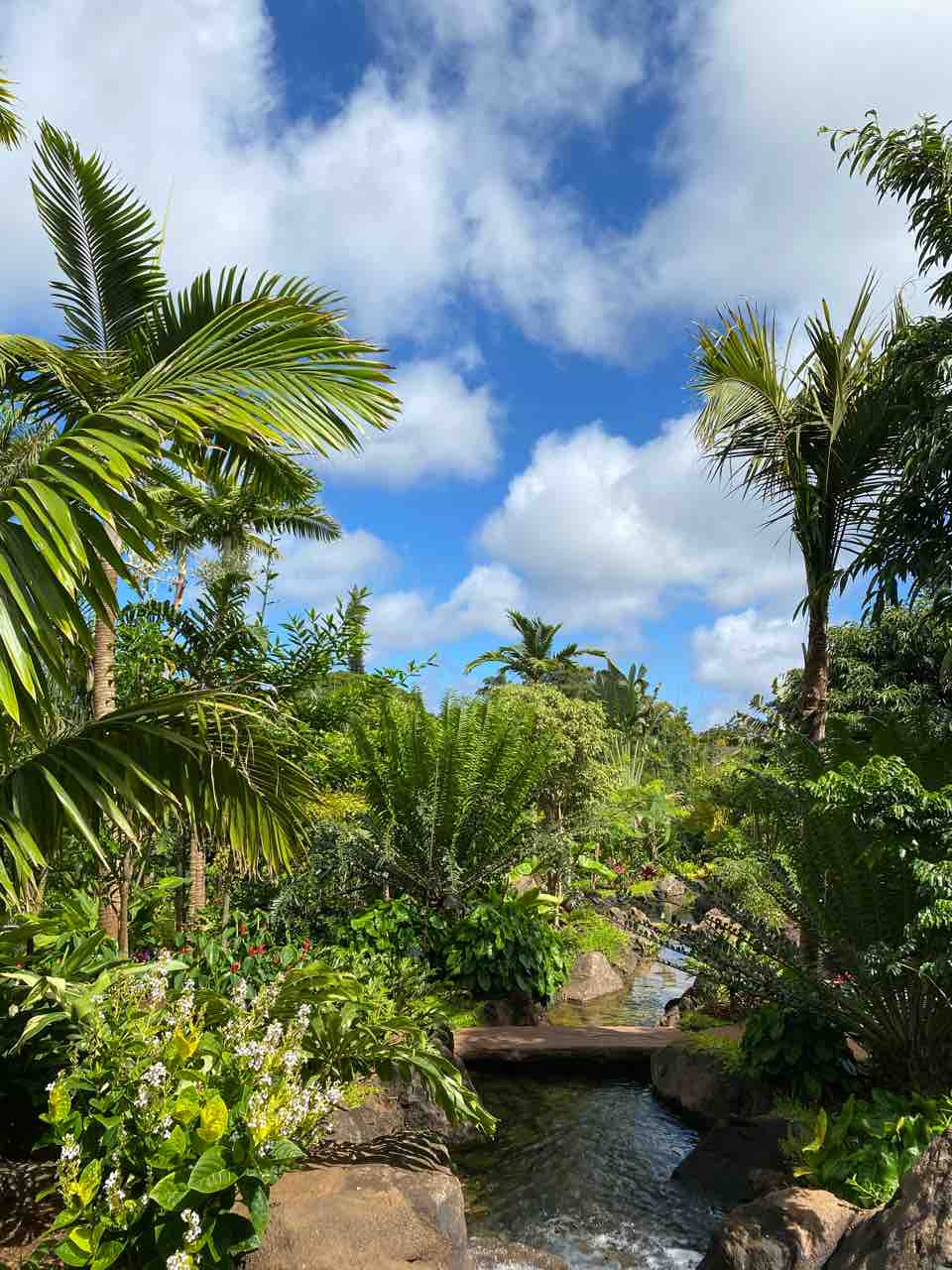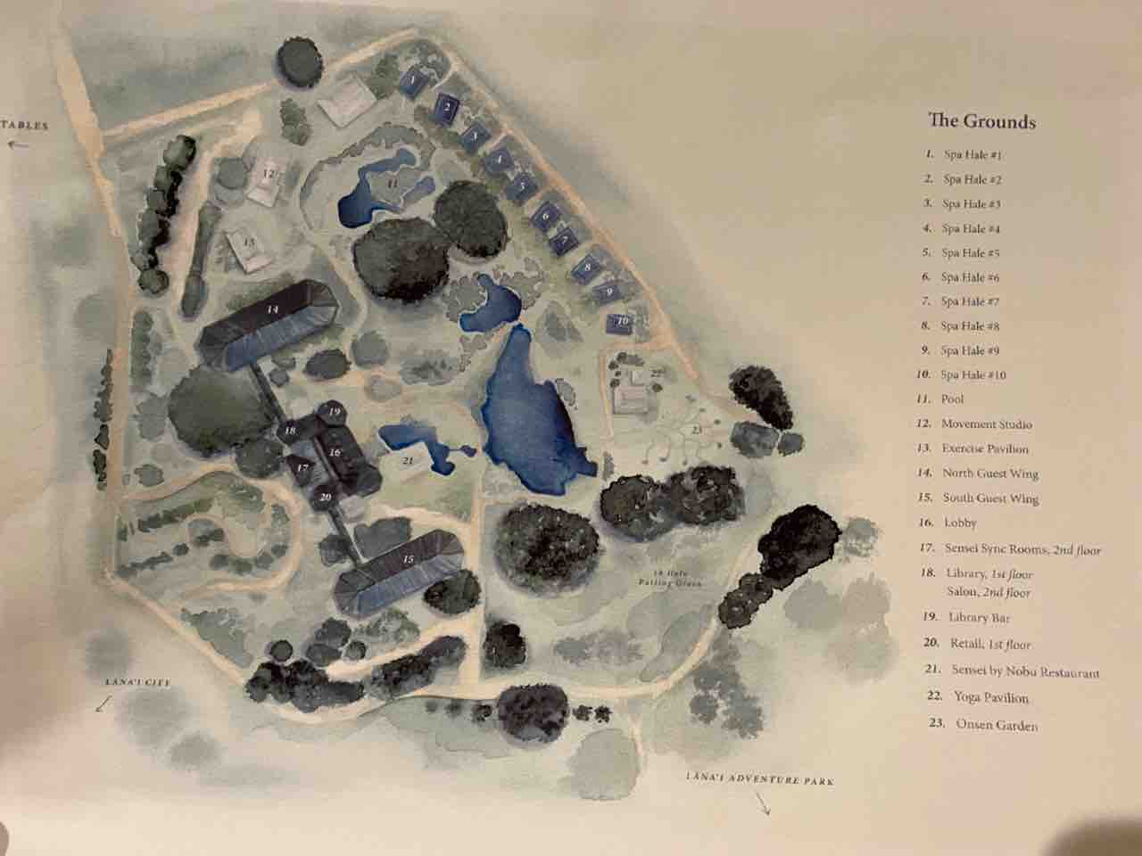 広いガーデン、プールとプールサイドメニュー、ヨガパビリオン、温泉ガーデン、図書館を順にご紹介〜😊