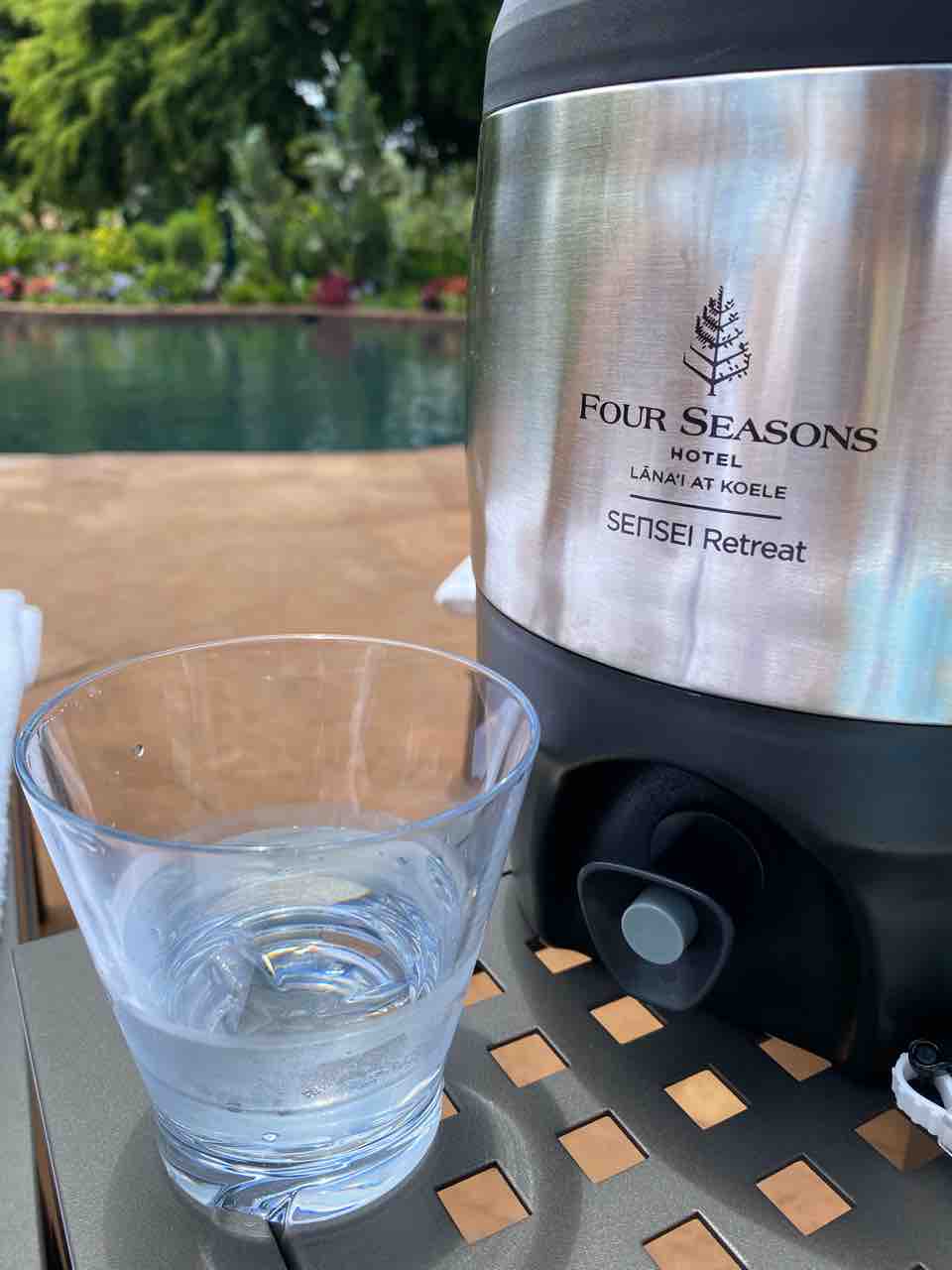 プールサイドのお水は、こんな感じで魔法瓶のサーバーに入れてくれます。