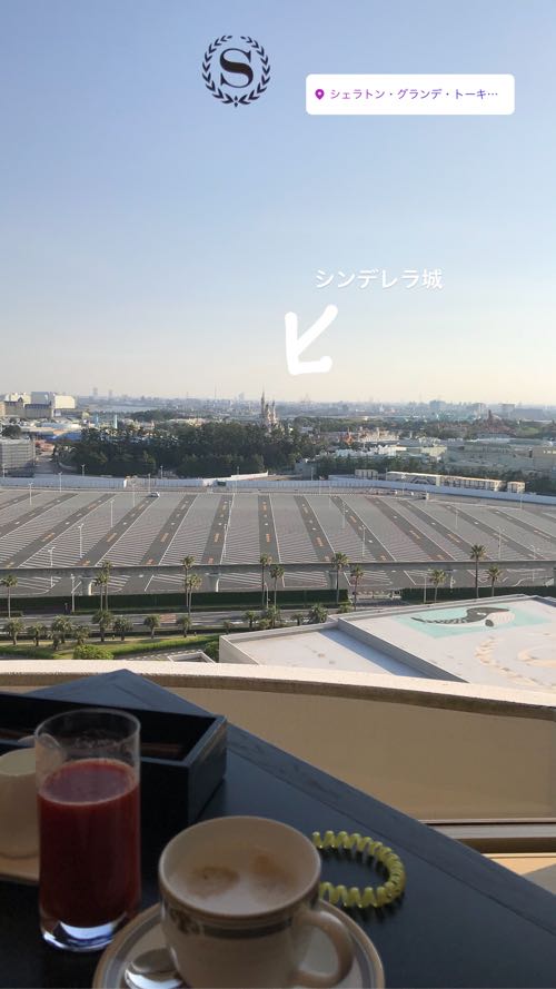 シンデレラ城を見ながら朝ごはん。