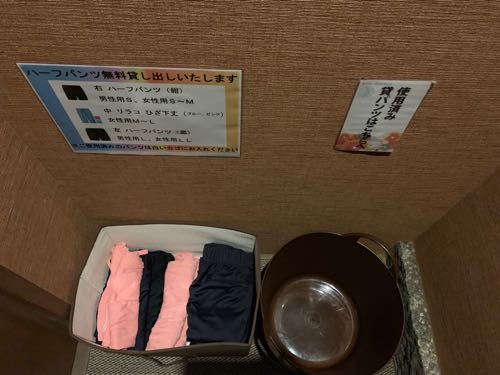 固まるまでの間、足湯に入れます。ハーフパンツを貸してくれるので、どんな格好でも大丈夫。