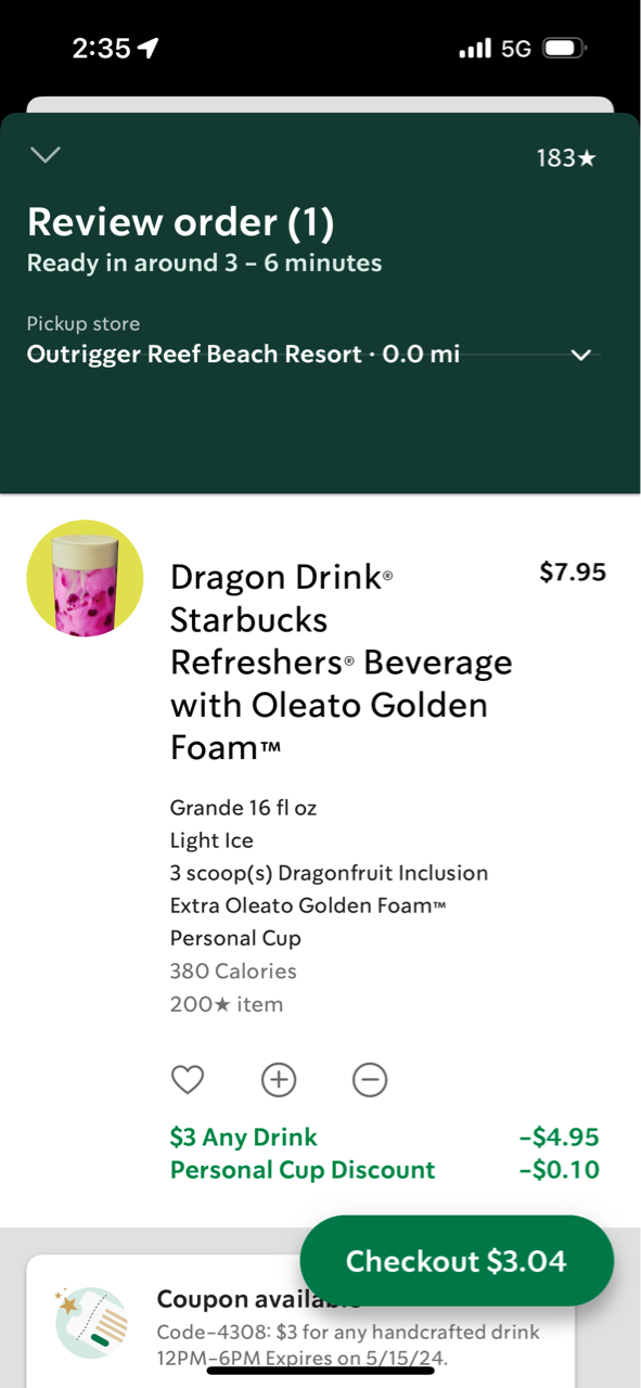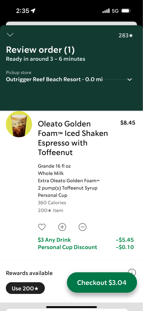 だってグランデサイズのドリンクが3ドルなのよ〜!