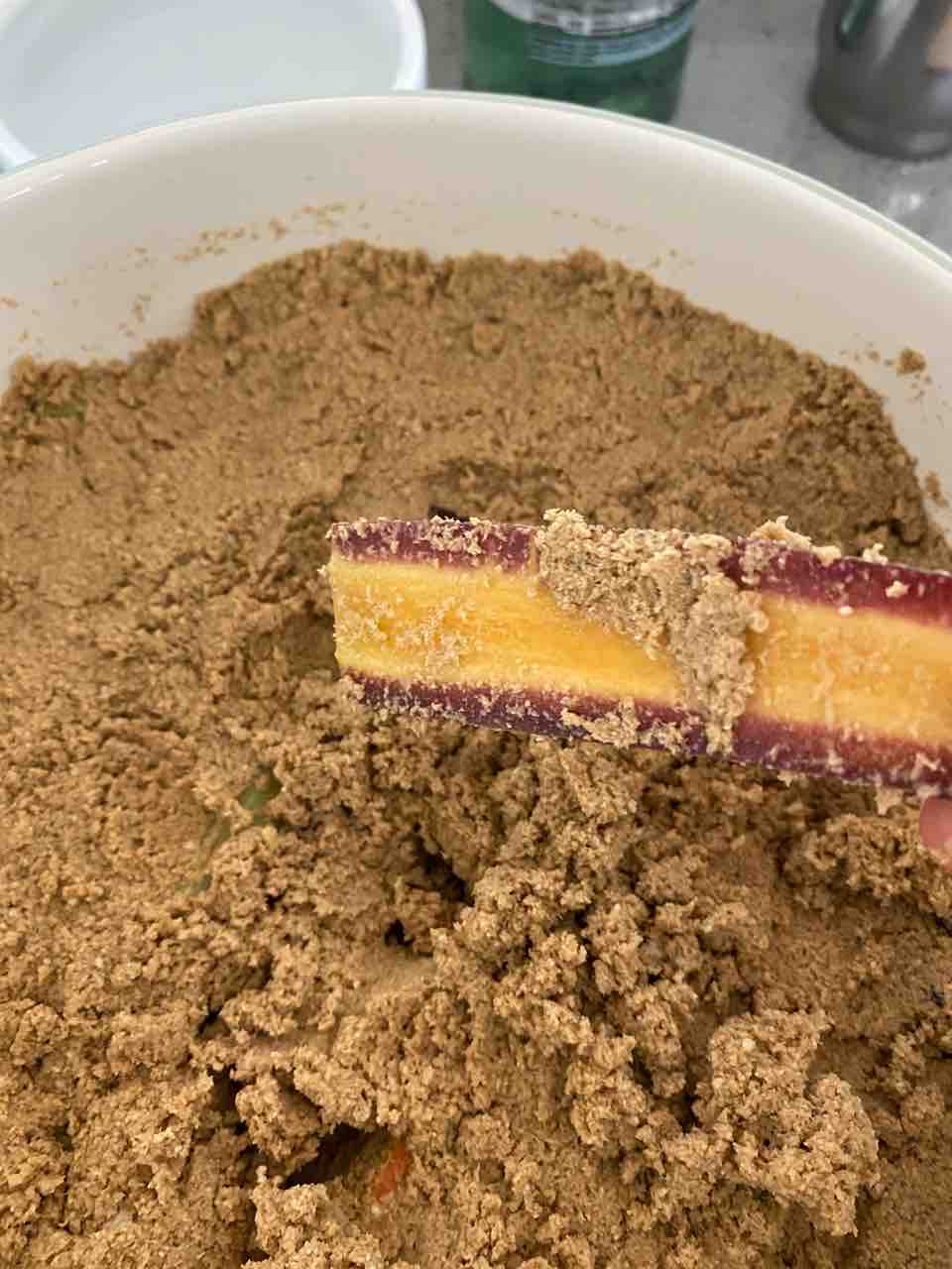 六日目になると、さらに甘い匂いになってきて、「これ糠漬けじゃなくて甘酒できちゃうんじゃない?」と不安で、あれこれ検索した結果、酵母菌が多くなってるっぽかったので、塩を足してみました。