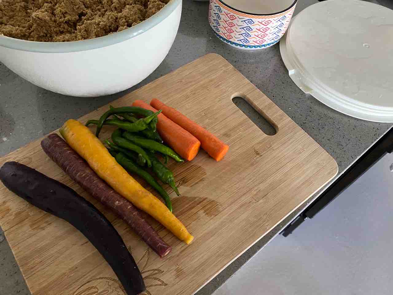 インスタで聞いたハワイの糠漬け先輩方からのアドバイスによると、どうやらハワイでは冷蔵庫保存の方がいいらしいのですが、糠床を育てる捨て漬け期間は、常温で頑張ります。