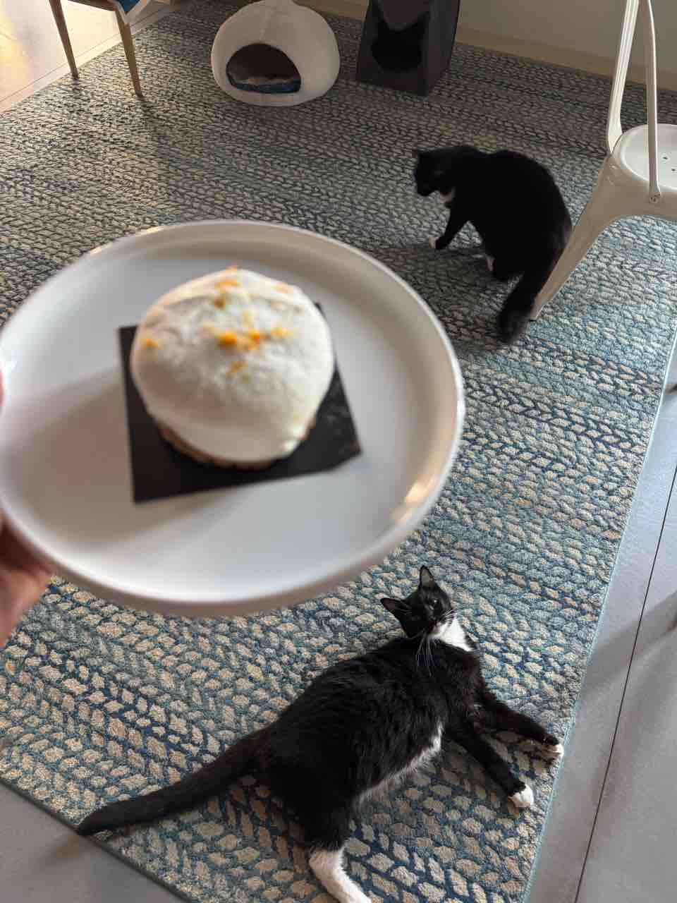 最初は食べてなかったのだけれど、私と夫がうまうま食べてたら催促してきたので、ちょびっとだけ。
