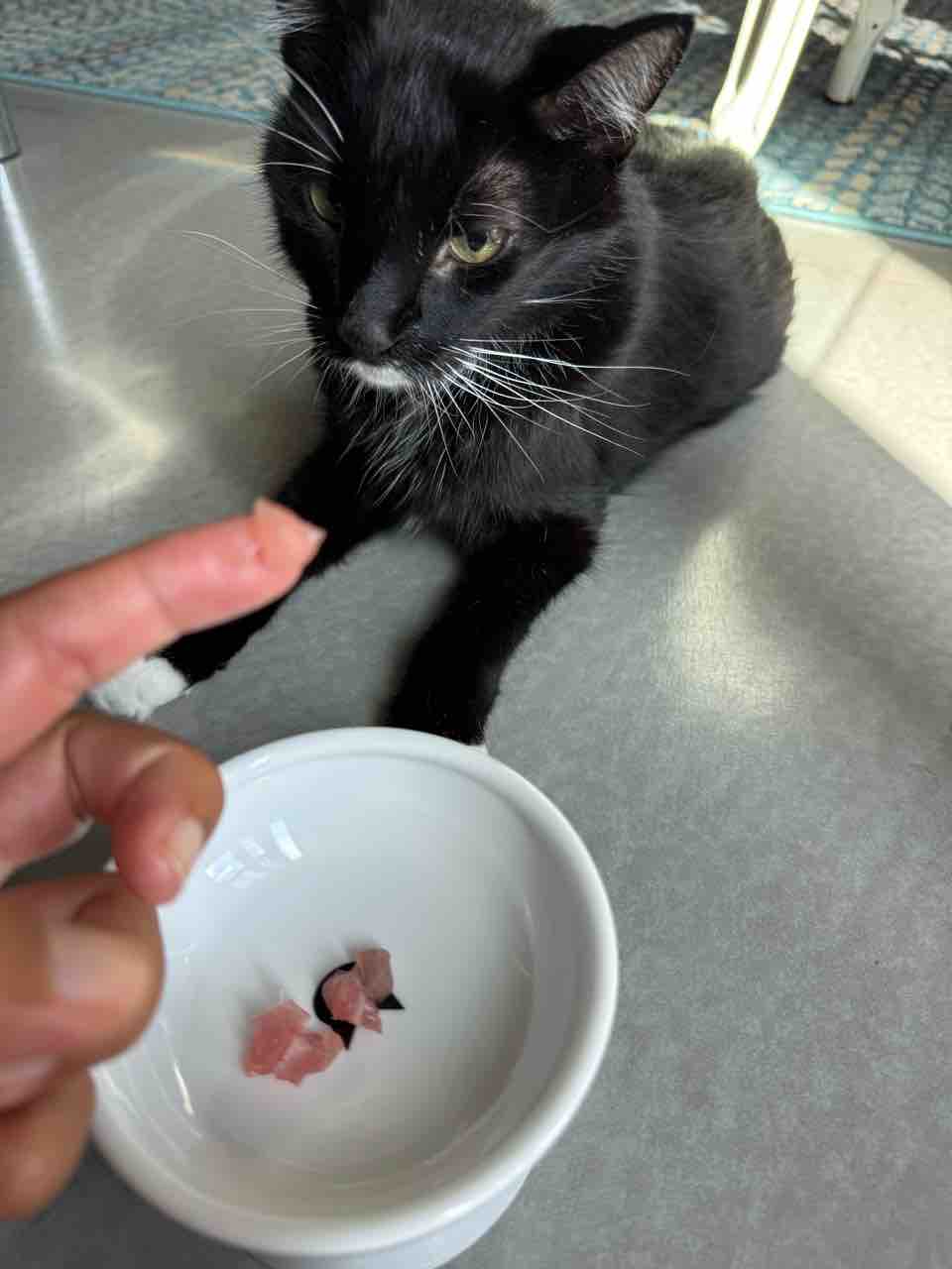 あとは、私がツナのディップを食べてたら食べたがったので、たま様用にツナのキャットフードをすり鉢でペーストにしてみたり。