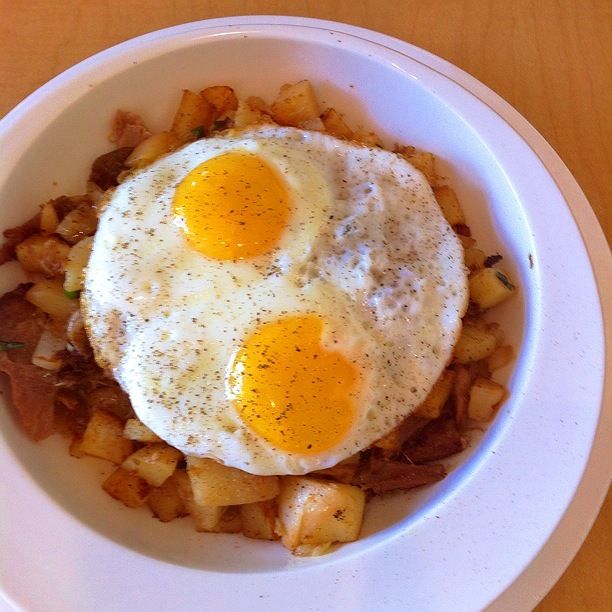 ポテトとダック(!)を炒めたやつ、たまご。