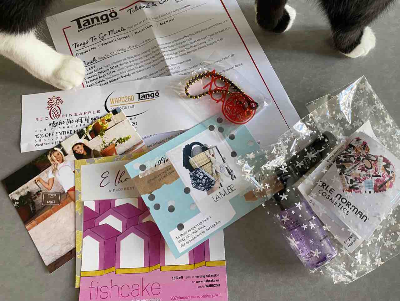 袋の中にはワードのあちこちのお店のクーポンやら試供品なども入ってました。
