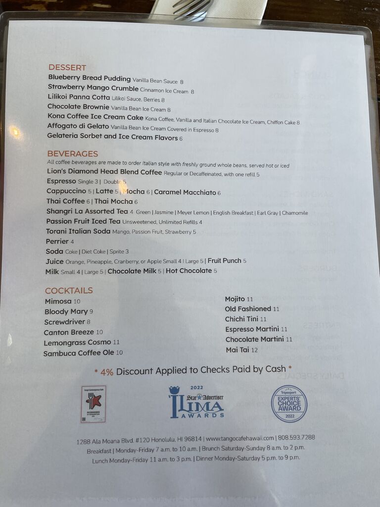 アロハ!ハワイ在住aki(@aki.hawaiineko)のブログへようこそ!このページではカカアコのワードにあるレストラン(カフェ?)、Tango Contemporary Cafe(タンゴ・コンテンポラリー・カフェ)への訪問記録をまとめていきます。