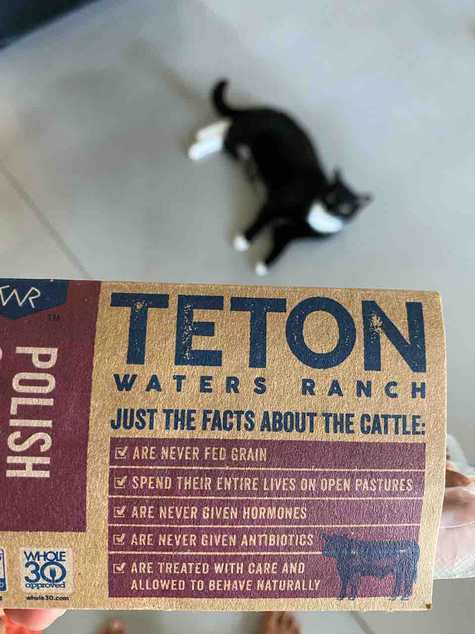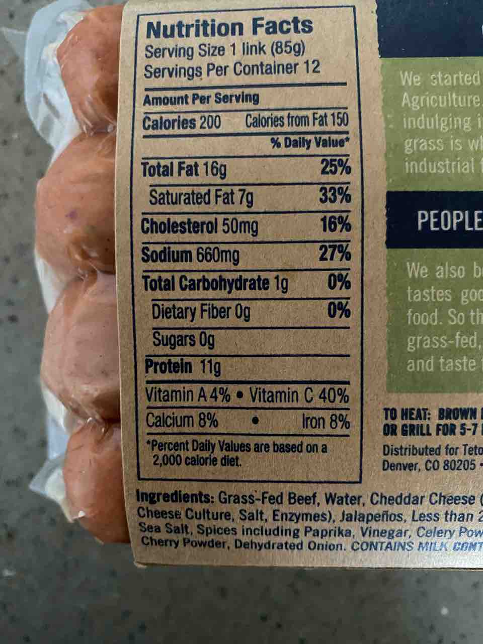 この前コストコで買ったグラスフェッドビーフのポリッシュソーセージ。TETON!テトン?