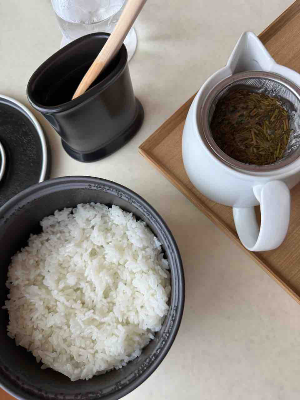 ほかほかご飯に、ほうじ茶。このお茶がとっても美味しかったのよ…!