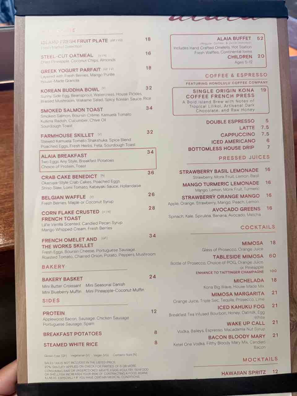 ビュッフェは52ドル。12歳以下の子供は20ドル。