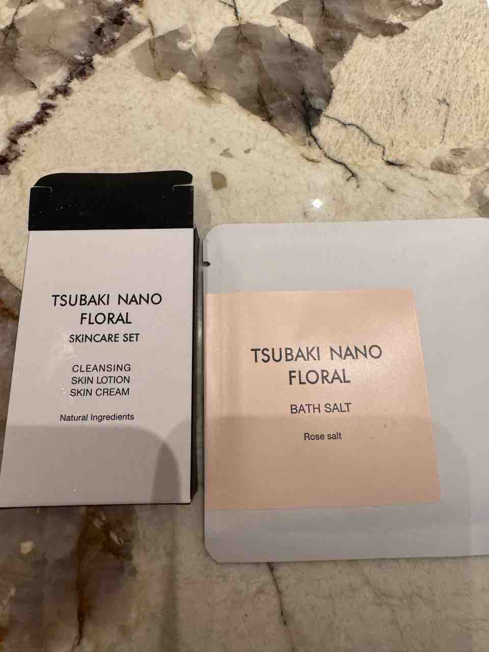 椿ナノフローラルのスキンケアセットと、バスソルトもありました。