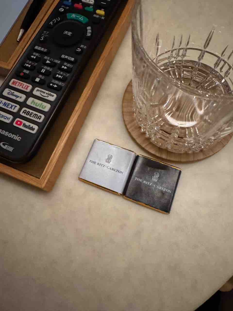 リッツはターンダウンサービスがあるので、食事から戻ってきたらお部屋が夜用に整っていてチョコレートが置いてありました。
