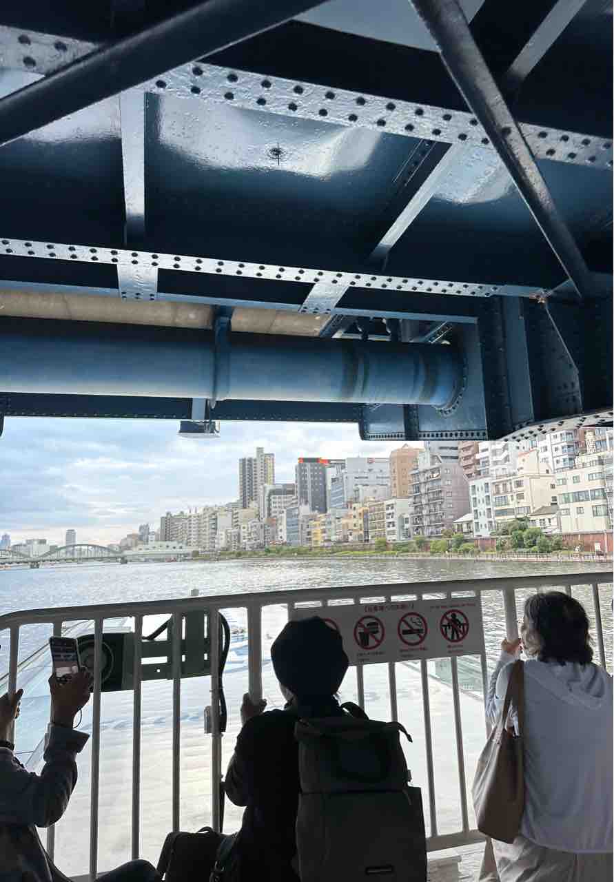いくつもの橋を潜って南下していくのですが、橋が近すぎて、「しゃがんでくださーい!」って言われるので、さっとしゃがみます。