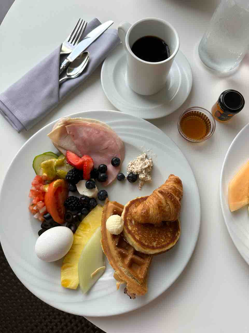夫がマリオットBonvoyプラチナエリートなので、1部屋につき2人、無料朝食がいただけます。