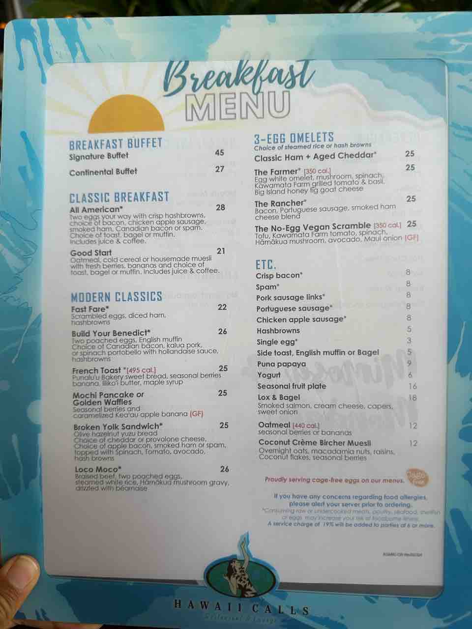 オムレツなど温かいものも含むビュッフェは45ドル。