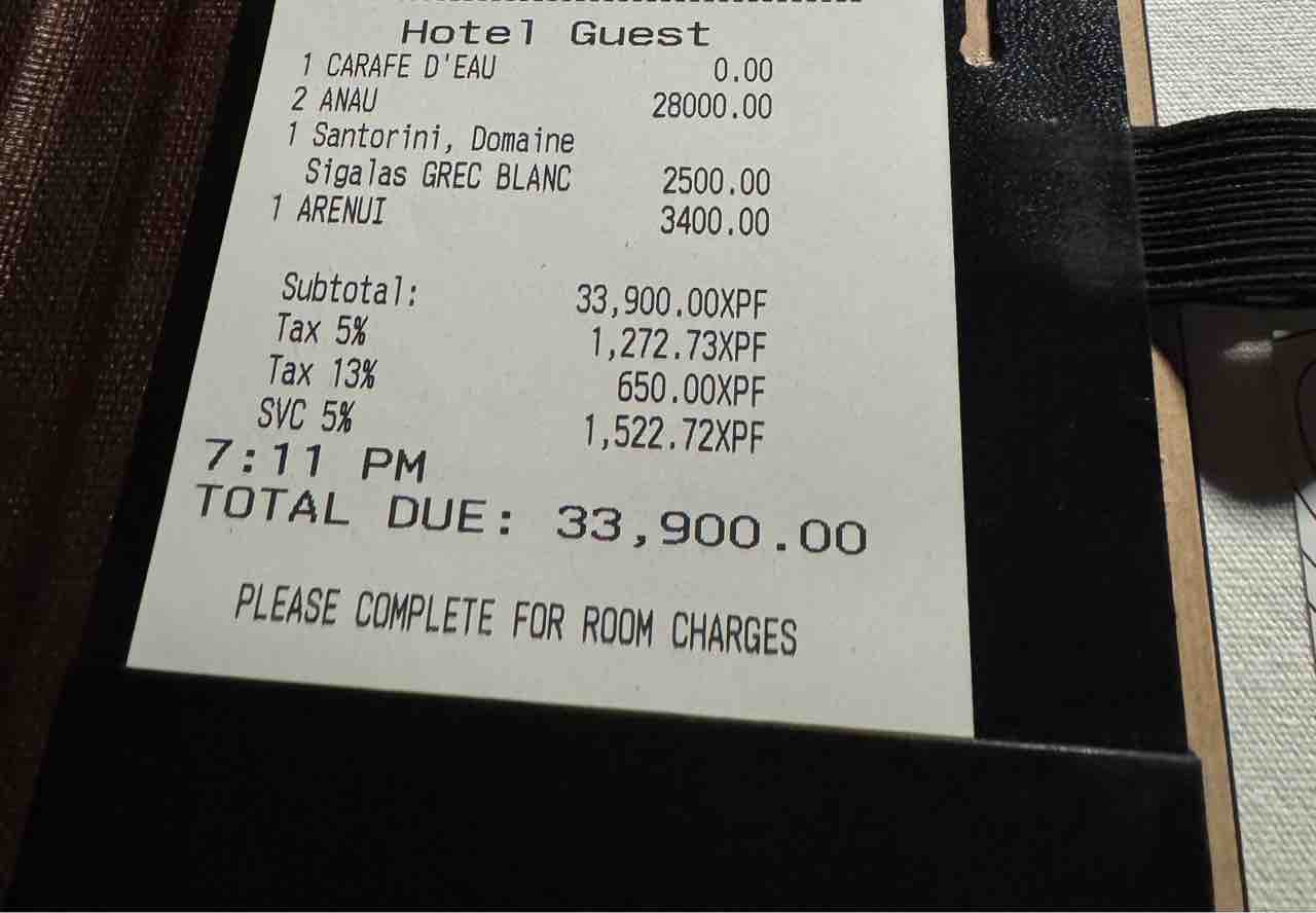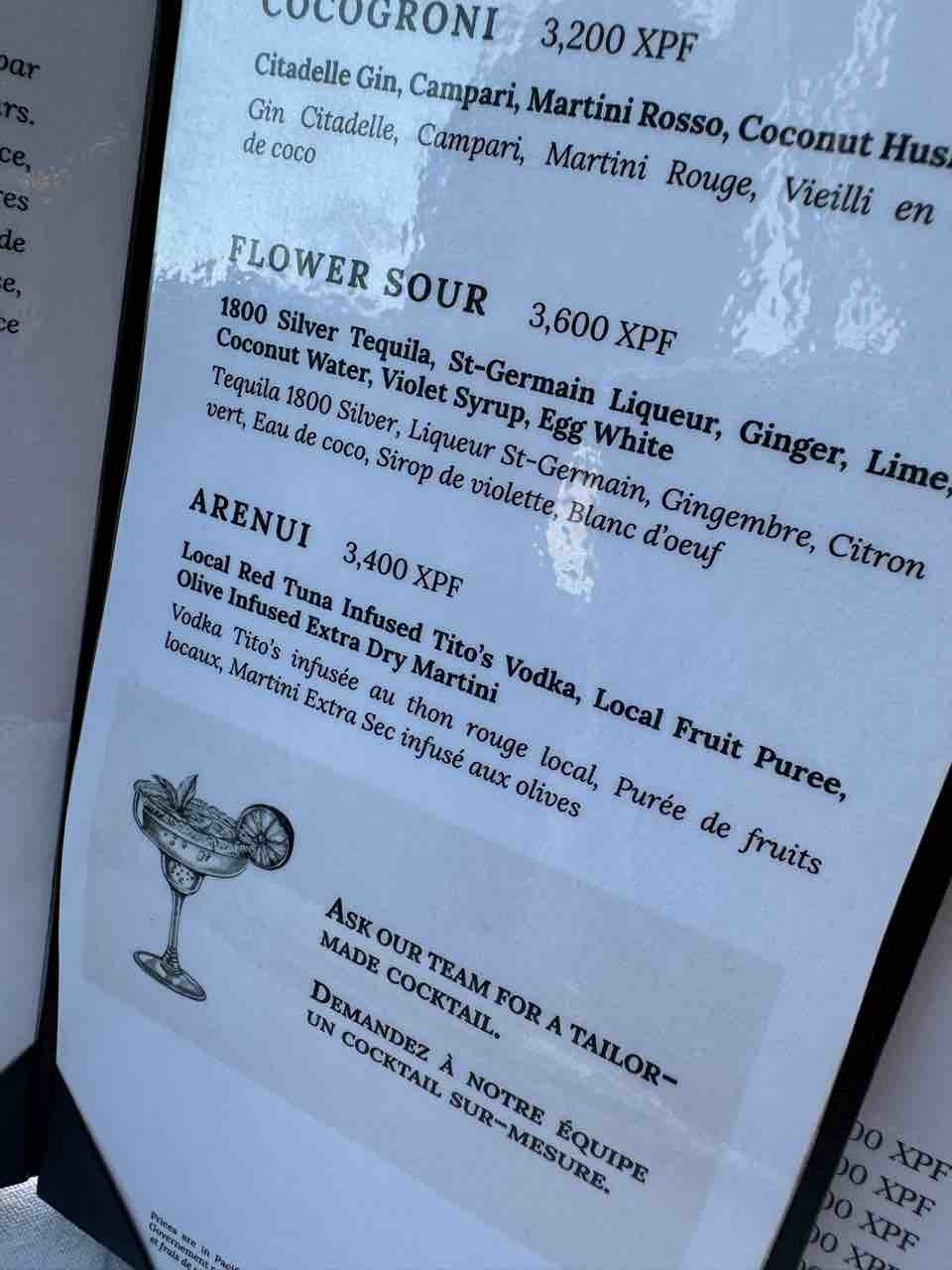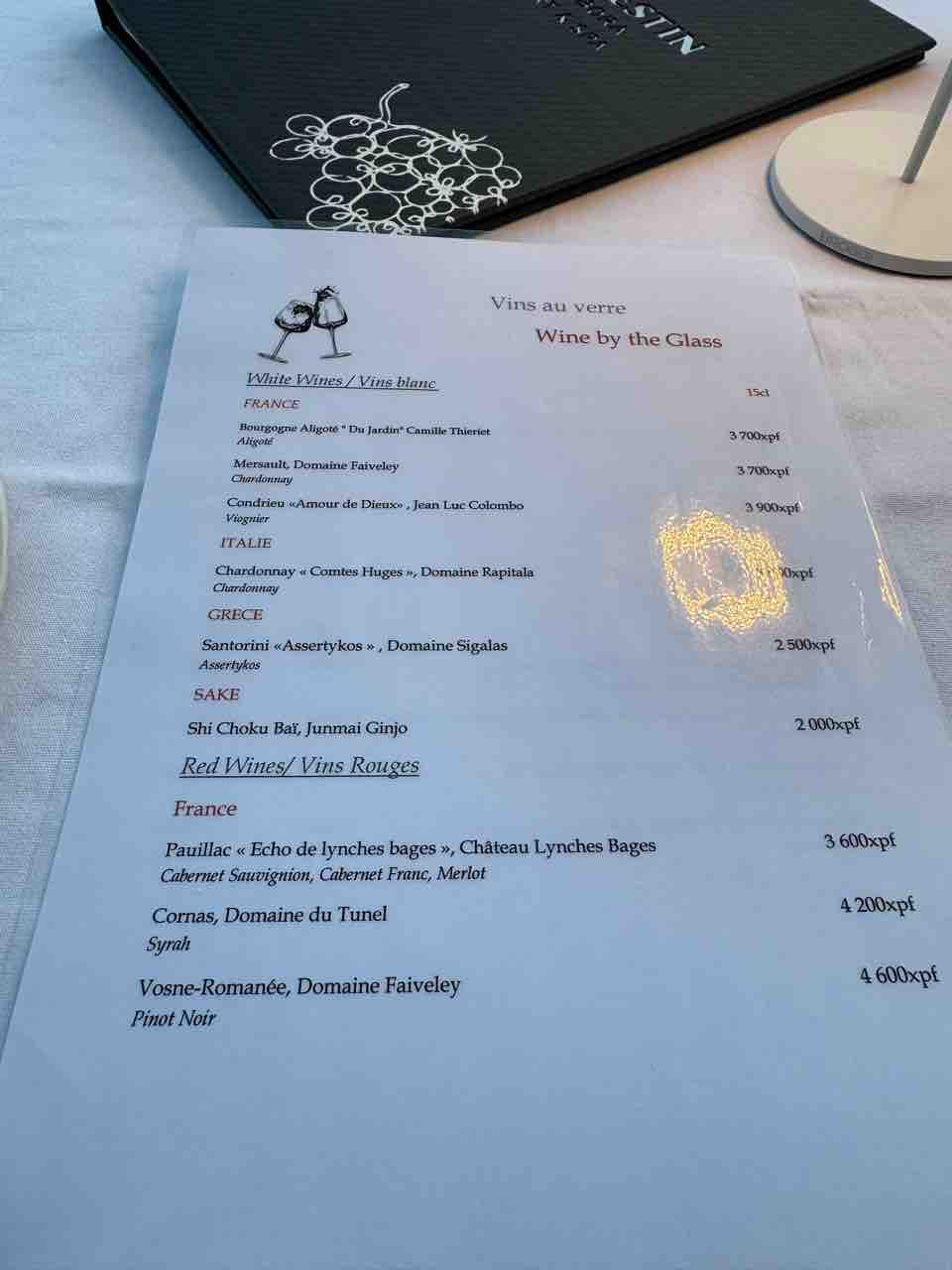 ワイン3杯ぐらいつくワインペアリングもあって(8000XPFだったかな?)それも気になったんだけど、お酒、そんなに飲めないので…!