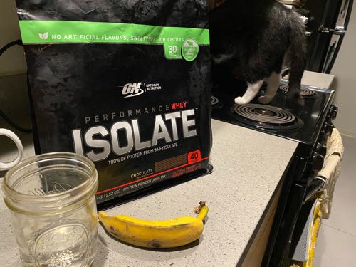 アップルバナナとプロテイン飲んで。