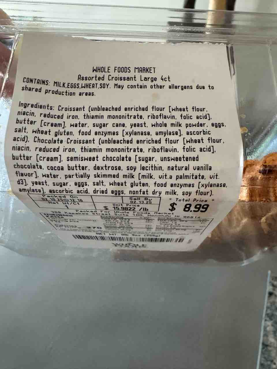 クロワッサン2個とチョコクロワッサン2個入ってて8.99ドル。