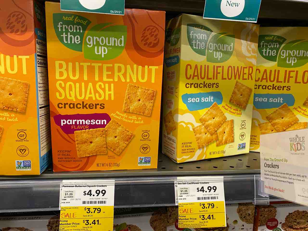 このカリフラワークラッカーか、バターナッツスクアッシュのクラッカーを買おうと思って。。。