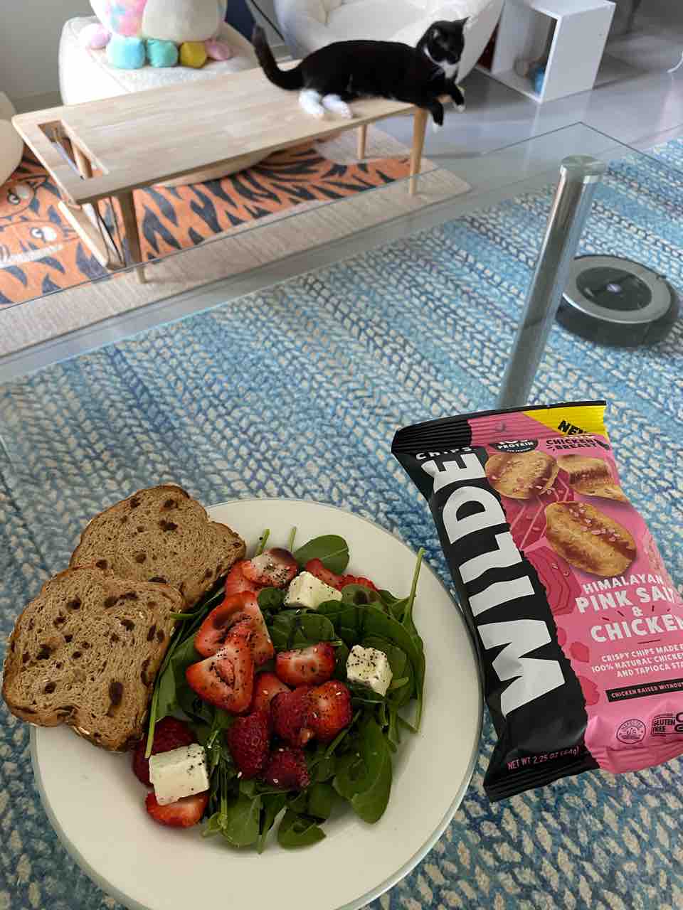 パンとサラダにチップスという組み合わせができちゃう鶏胸肉チップス、神!